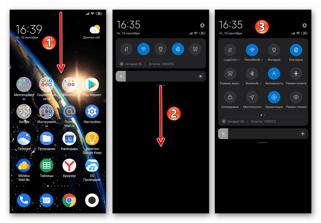 - Свайпните вниз по экрану, чтобы открыть панель уведомлений.
