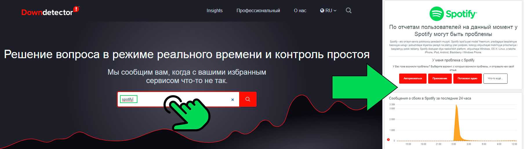 Информацию о функционировании сервиса можно сделать через сайт, отслеживающий работы серверов Downdetector.