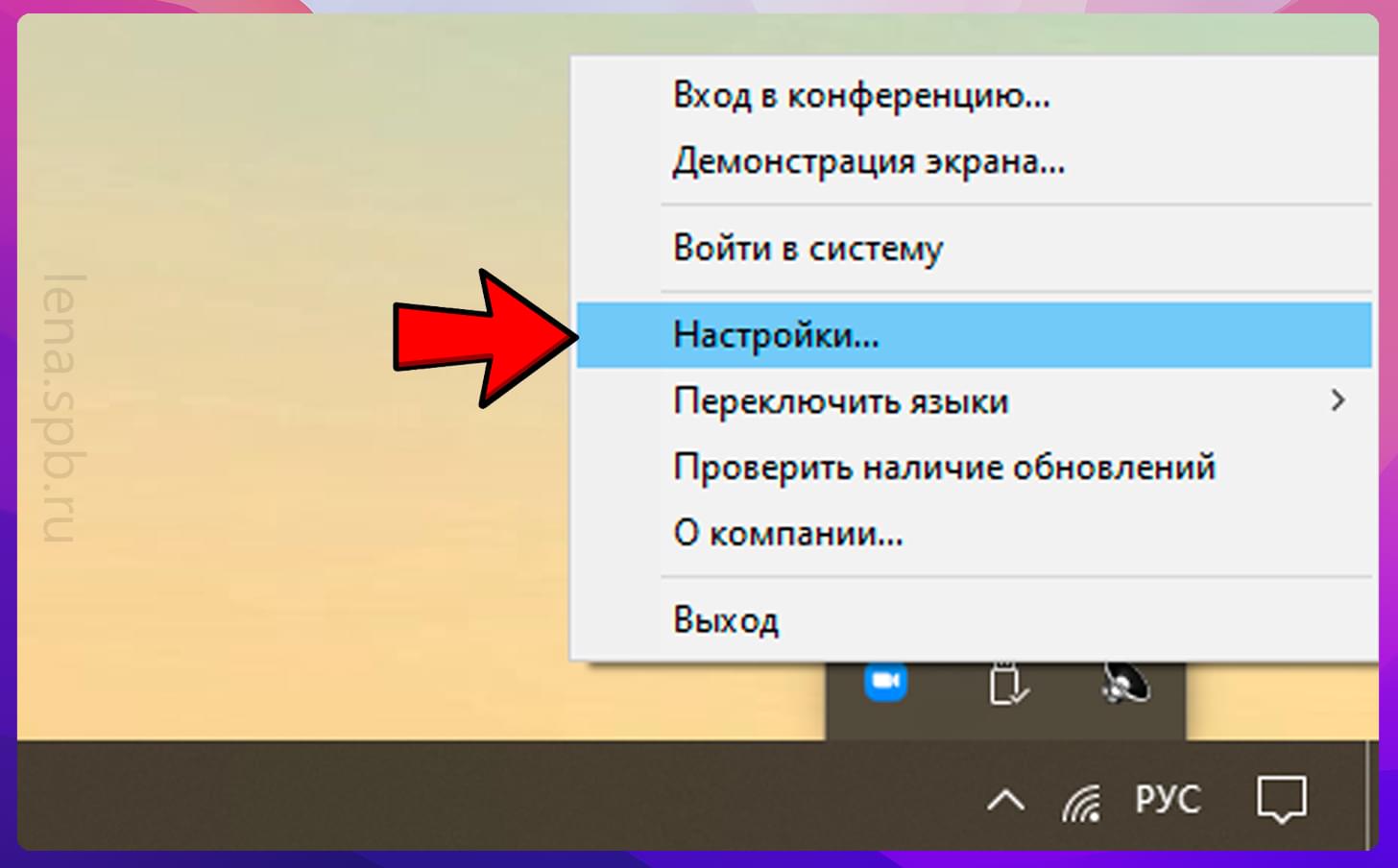 Пользователям Windows: чтобы перейти в настройки, кликните правой кнопки мыши на значок Zoom в трее (ищите в правом нижнем углу экрана) и выберите пункт «Настройки…».