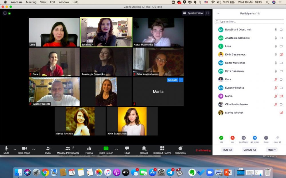- «Speaker view» или «Gallery view» / «Видеть говорящего» или «Видеть всех участников» – дают возможность видеть либо одного участника, который взял слово, либо сразу всех (на смартфонах для этого можно двигать вправо или влево сами изображения);
