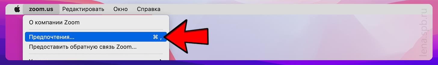 Пользователям Mac: чтобы перейти в настройки, выберите меню «zoom.us» (меню находится в левом верхнем углу экрана), а затем «Предпочтения…».