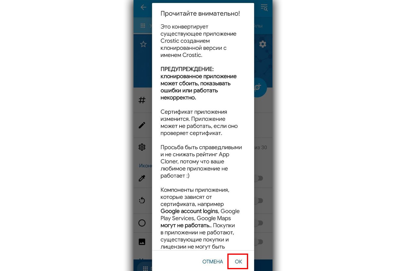 - Далее система уведомит вас о том, что создание клона требует и дополнительного клона сервисов Google, где вам нужно просто согласиться с этим уведомлением, подтвердив действие. Обычно такая процедура необходима только при первом копировании;