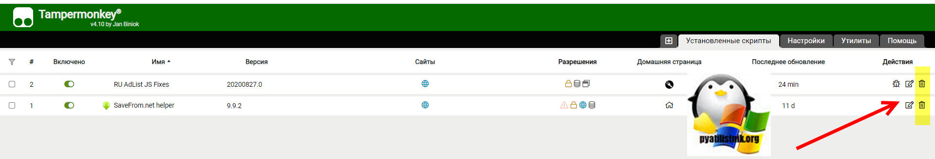 Если захотите по каким-то причинам удалить этот скрипт из Tampermonkey, то это можно сделать из панели управления