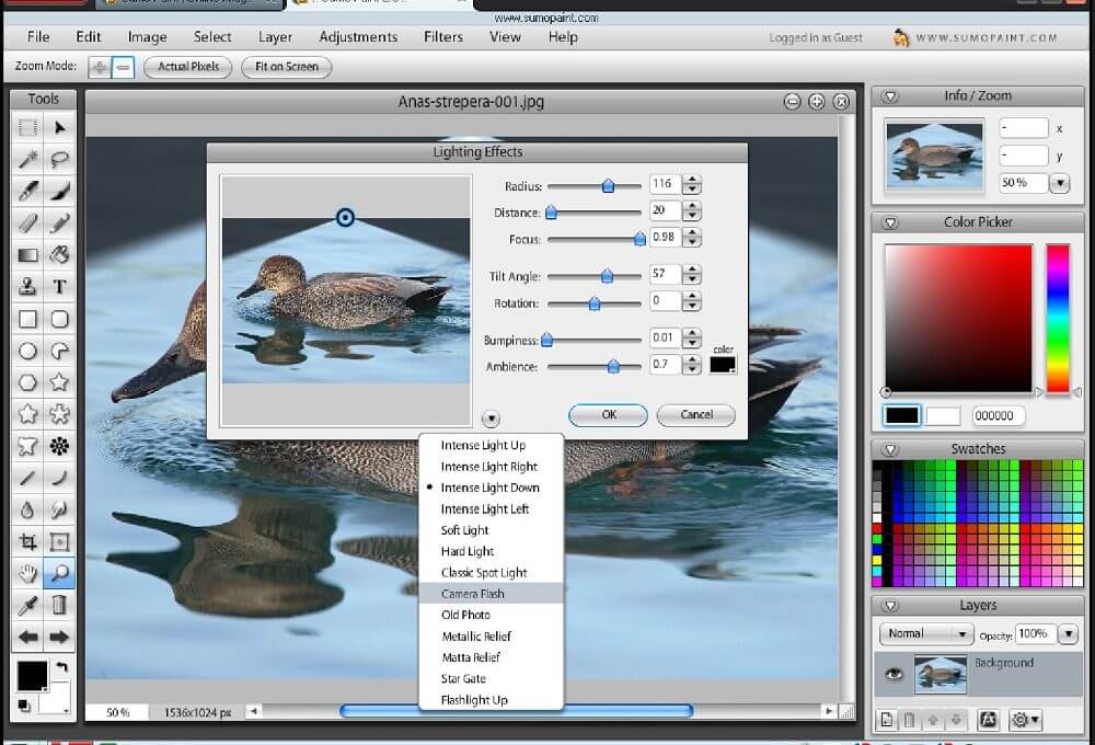 Сервис Sumopaint имеет практически такой же набор инструментов, как и Adobe Photoshop. Несмотря на наличие слова «paint» в названии, сервис больше похож на пресловутый Adobe Photoshop, нежели на всеми нежно любимый симулятор шестилетнего художника с продлёнки от компании Microsoft.