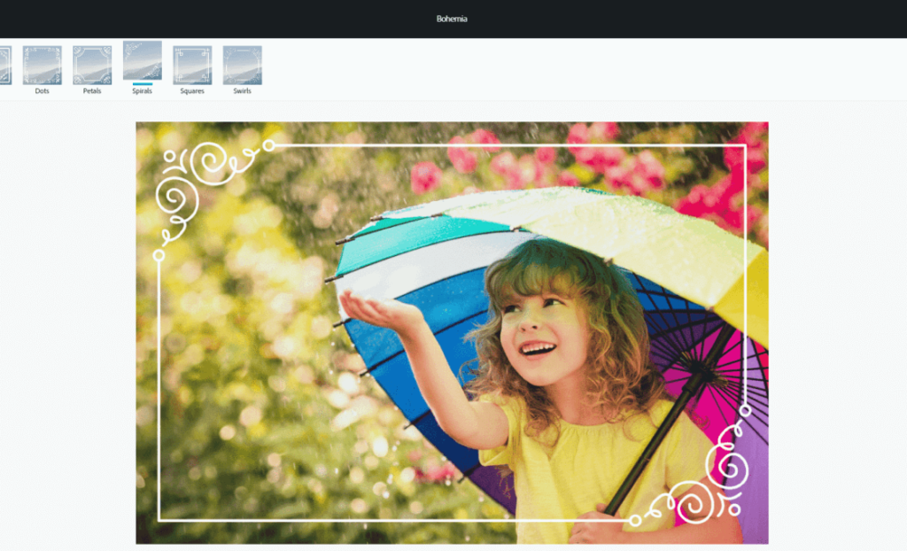 Приложение предлагает несколько стилей рамок, которые вы можете добавить вокруг вашего изображения.