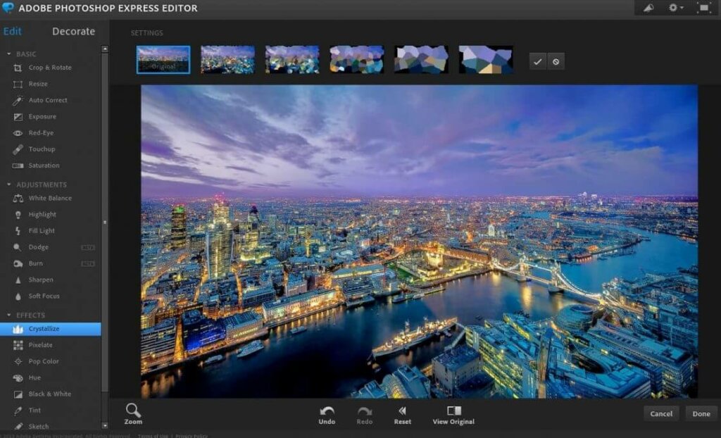 Можно применить эффект размытости или зернистости фото в Photoshop Express Editor. Вот мы и добрались до младшего отпрыска самого популярного фоторедактора в мире, обласканного молвой детища компании Adobe, Photoshop Express. Конечно же, онлайн-версия photoshop.com/tools/editor значительно проще своего более профессионального собрата.
