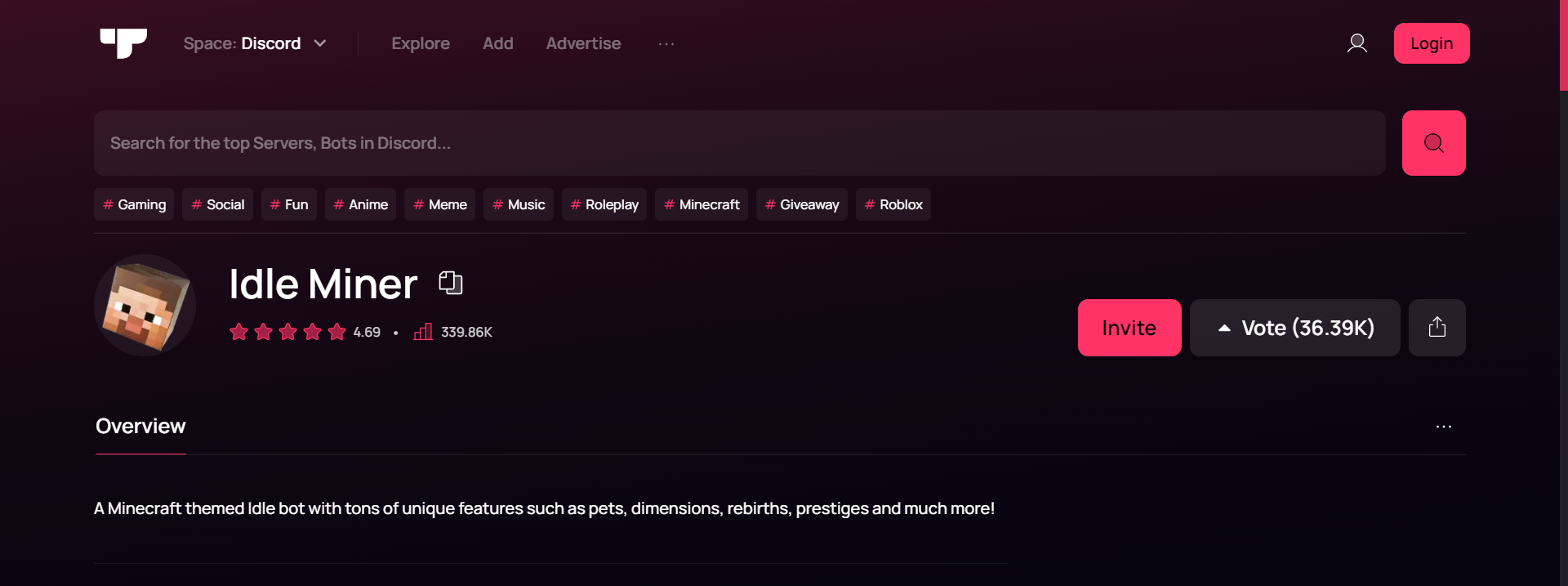 Если вы все еще хотите, чтобы он играл в фоновом режиме, бот Idle Miner Discord позволяет вам попробовать игру, не присоединяясь к более крупному серверу.