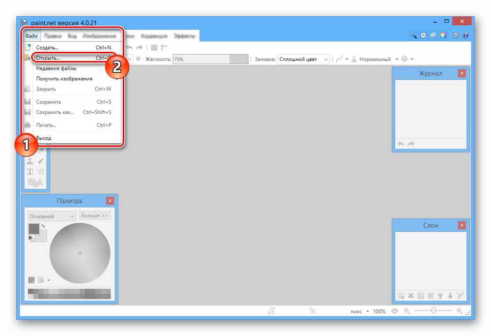 1. Откройте программу и перейдите в меню «Файл», затем в выпадающем списке выберите «Открыть».