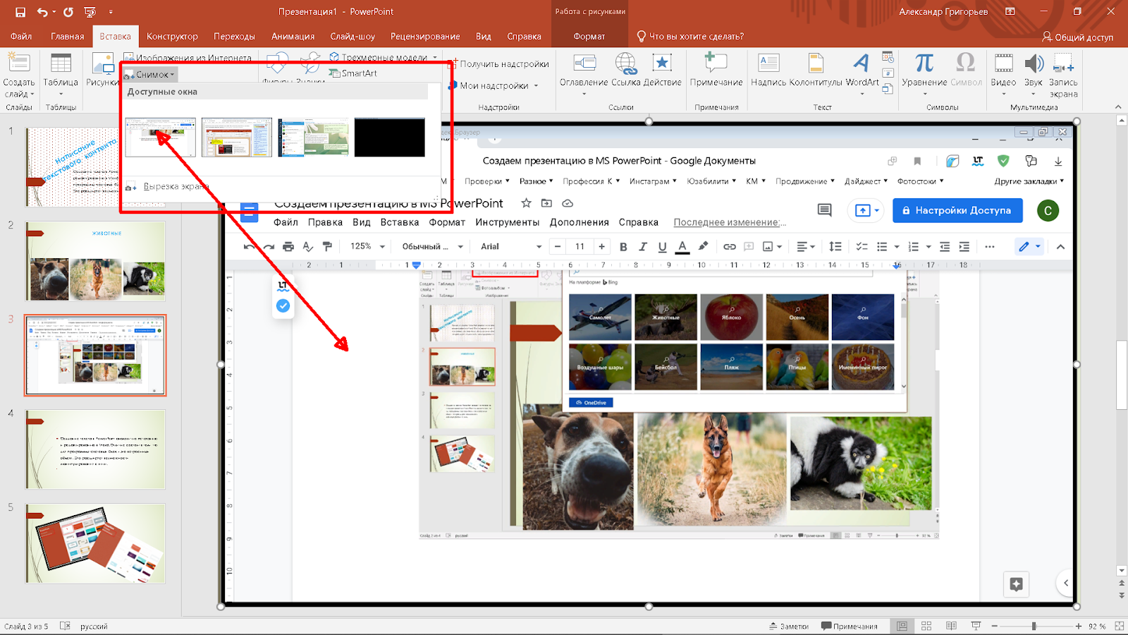 - Делайте быстрый снимок экрана, скриншот сразу будет размещен на листе. Далее с ним работайте как и с любым другим объектом.