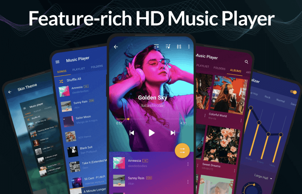 Rocket Music Player – это приложение для Android M4A, в котором можно делать покупки внутри приложения. Вы можете получить графический эквалайзер 10 и встроенный текст для воспроизведения M4A. Если вы хотите прослушать несколько песен в категории, вы можете создать список воспроизведения с выбором партии. Встроенный таймер сна также помогает экономить заряд батареи. В последнее время многие пользователи жаловались на назойливую рекламу в бесплатном apk проигрывателе M4A на Android.