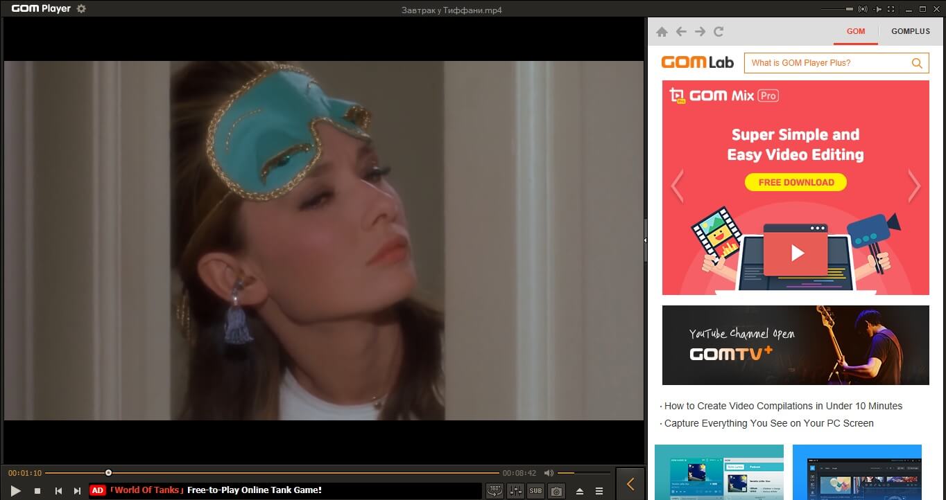 GOM Player можно настраивать для режима мультизадач: закрепить его над остальными окнами и установить прозрачность, чтобы смотреть видео и одновременно работать над другими проектами. Воспроизведение можно настраивать вручную через удобную панель управления.