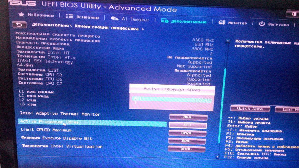 Если значения равные, значит все в порядке. Если значения разные, значит не все ядра активированы, читайте ниже, как их включить.