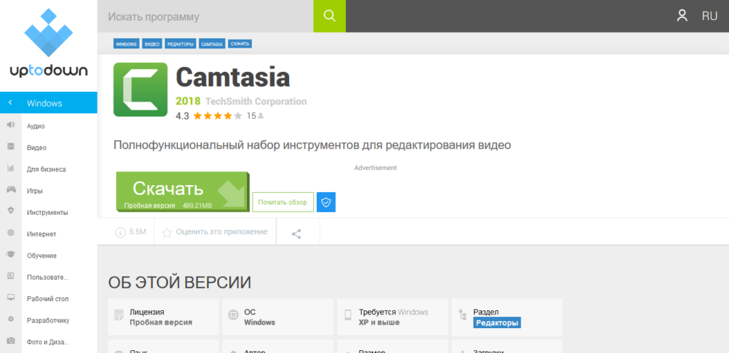 Camtasia Studio Загрузка и установка