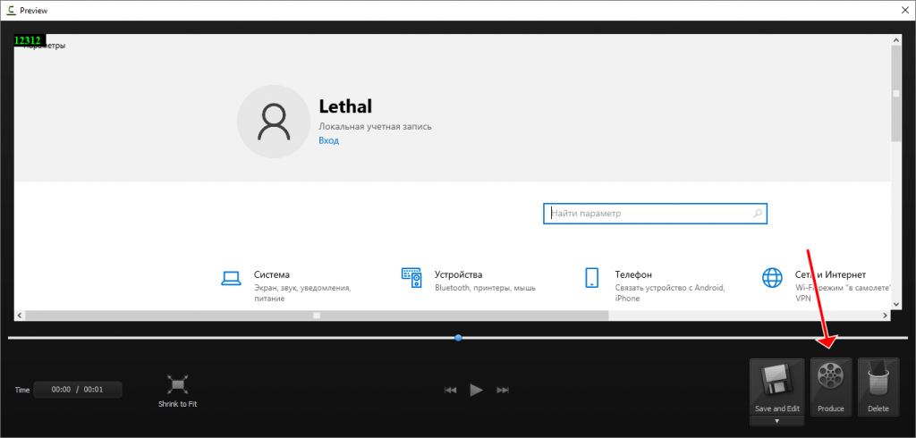 Видео появится в проигрывателе. Для передачи в редактор кликните «Produce».