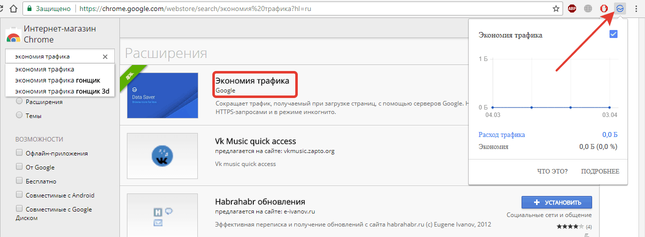 Для экономии трафика в Google Chrome предусмотрено специальное расширение. Оно устанавливается в браузер и позволяет сжимать данные сайтов. За счет этого и снижается потребление трафика.