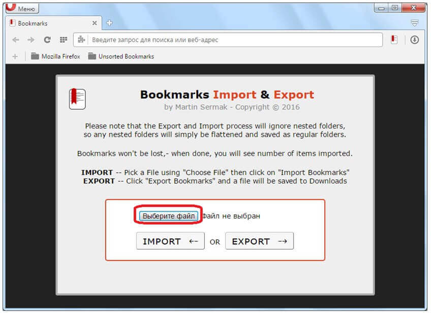 Импорт закладок в Opera работает аналогичным образом. Только после выбора файла нужно кликнуть «Import».