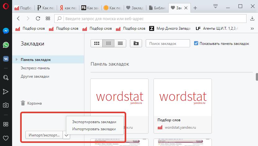 экспорт и импорт закладок в Opera
