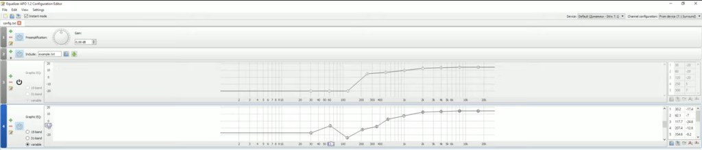 Для PUBG сбросьте конфигурацию эквалайзера и вручную выставьте следующие значения.