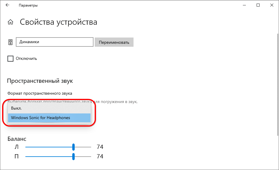 - Укажите формат пространственного звука и закройте окно.