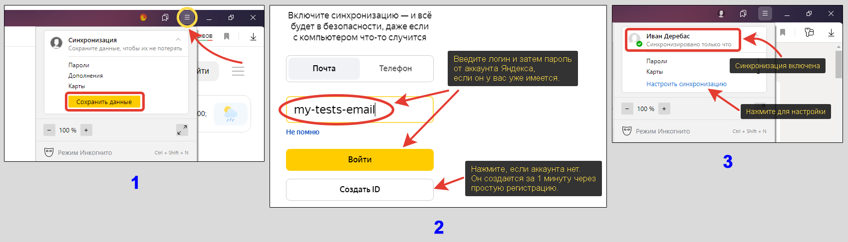 После того как браузер был переустановлен, снова восстановите все данные. Для этого выполните процесс синхронизации. Инструкция здесь следующая: