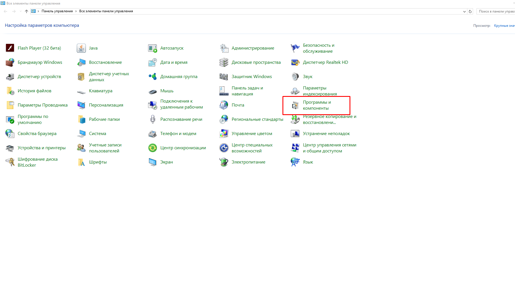 - Дальше переходим в раздел «Программы и компоненты», где нужно найти и зайти в менеджер браузеров. На картинке видно, где находится нужный раздел.