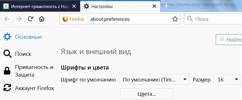 Можно изменить шрифт, размер и цвет текста, используемые в браузере. Для этого достаточно открыть настройки Мозиллы (рис. 1) и выбрать подходящие параметры (рис. 8).