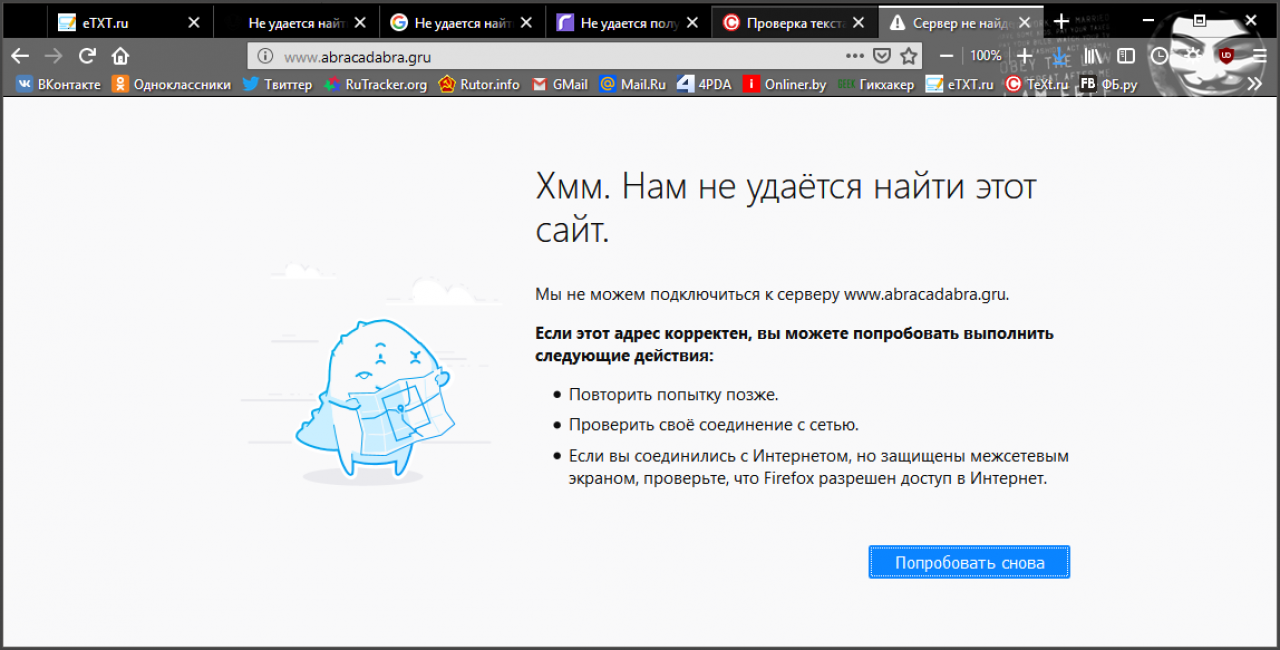 Хм. Нам не удается найти этот сайт