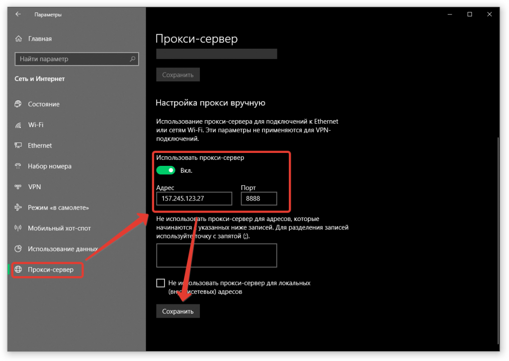 Чтобы настроить прокси по протоколу HTTP, следуйте инструкции: