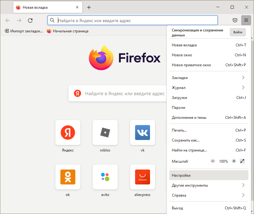 - Открыть меню браузера Mozilla Firefox и выбрать «Настройки»;