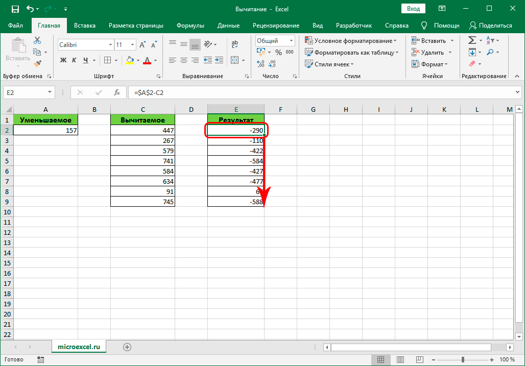 В некоторых случаях требуется вычесть из всех ячеек столбца одно и то же конкретное число.