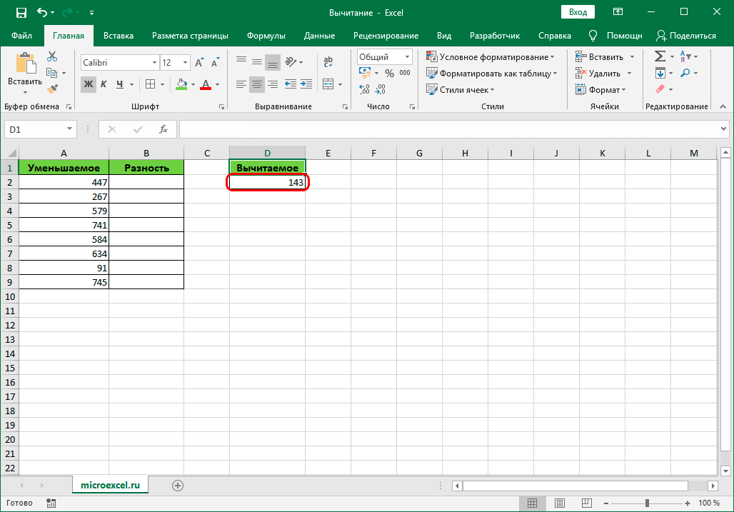 Примечание: рассмотренный выше пример можно рассмотреть в обратном порядке. Т.е. вычесть из одной и той же ячейки данные из другого столбца.