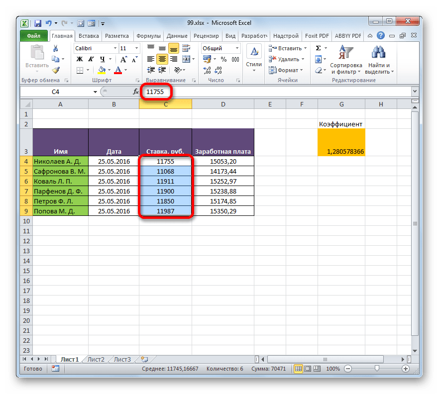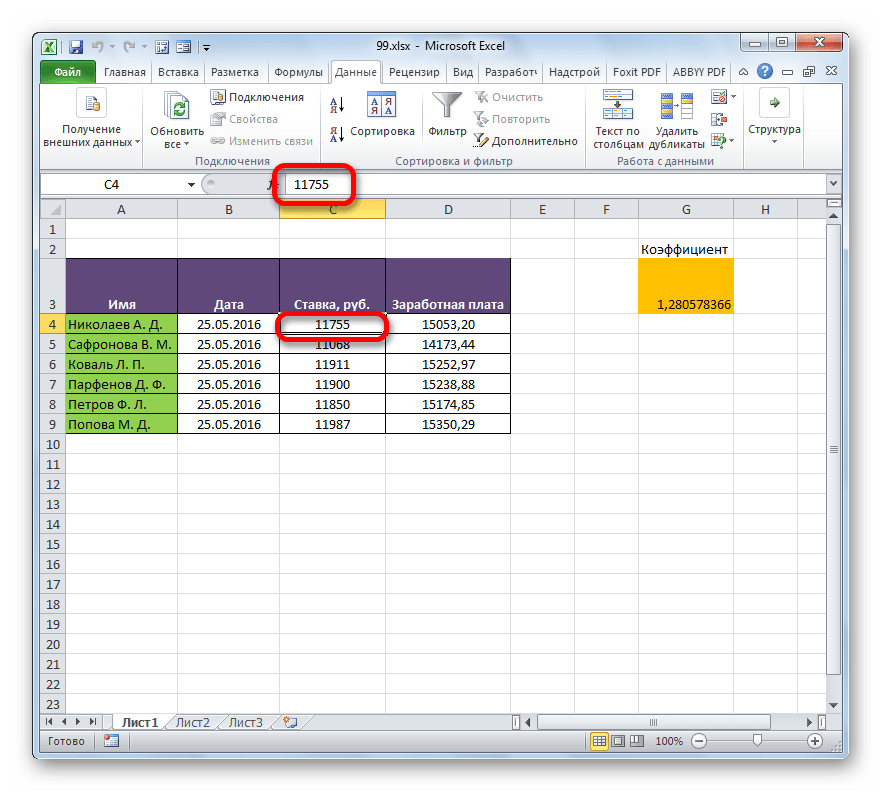 Итоговая формула будет иметь вид «=B3 C3». Вы, при желании, ее могли так и написать, то есть не использовать мышь.