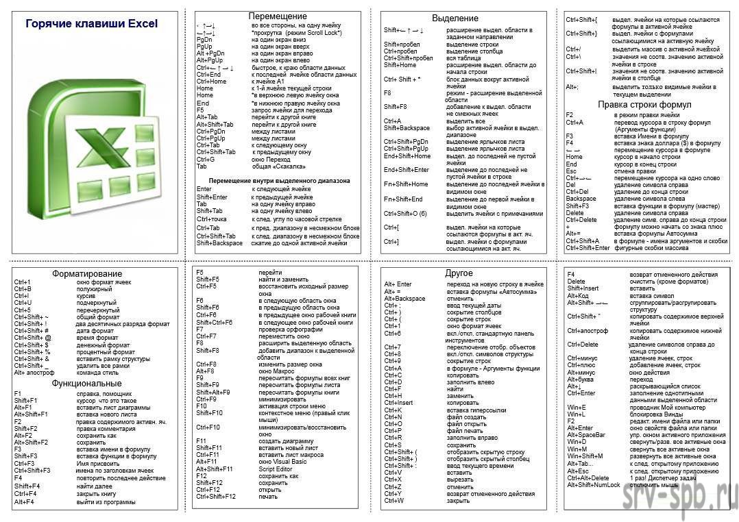Я перечислил основные горячие клавиши excel, но, конечно же, это не все комбинации. На картинке ниже можно увидеть полный список: