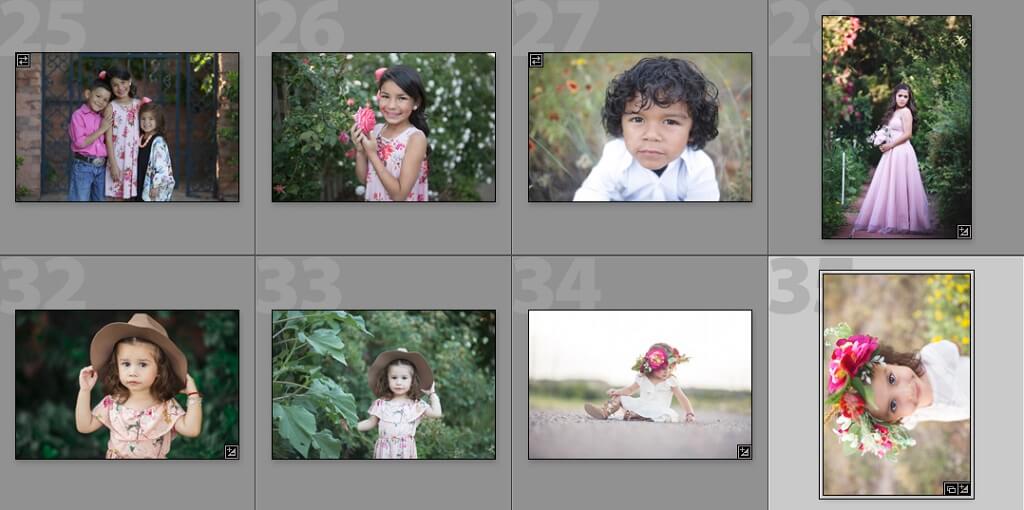 По мере перемещения вправо или влево Lightroom будет добавлять каждую из этих фотографий к вашему выбору. При этом не забывайте все время удерживать клавишу Shift. Как только вы уберете палец с клавиши Shift, Lightroom перестанет добавлять фотографии в выборку.