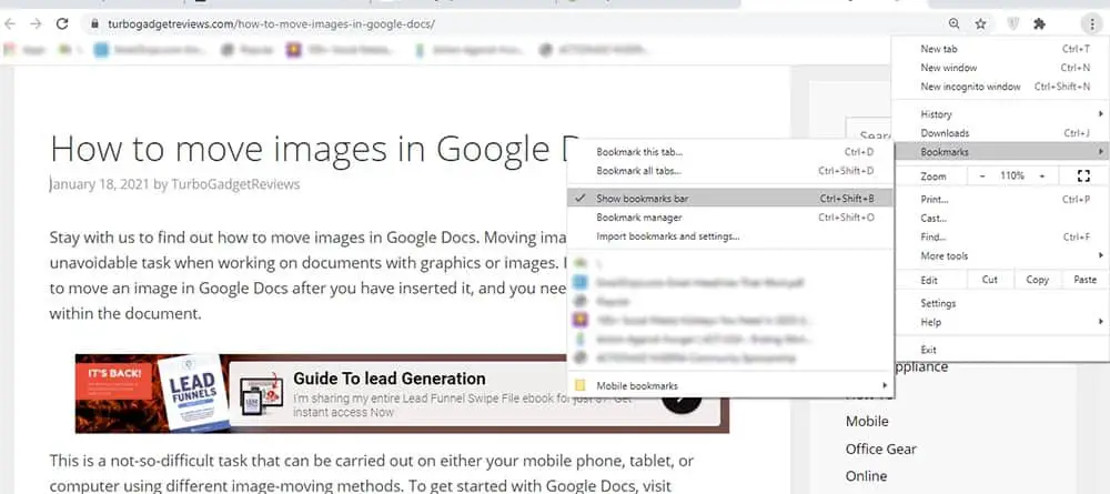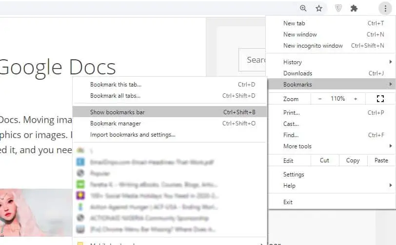 Once you select that option, the “Show bookmarks bar” option will be ticked, and all your bookmarks will display on your Chrome bookmarks menu.