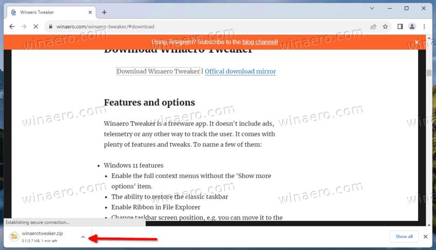 From now on, when you download a flag, Chrome will use the classic download panel at the screen bottom. Clicking on the file name will open it in an associated app. Nothing will change to the functionality of the browser.