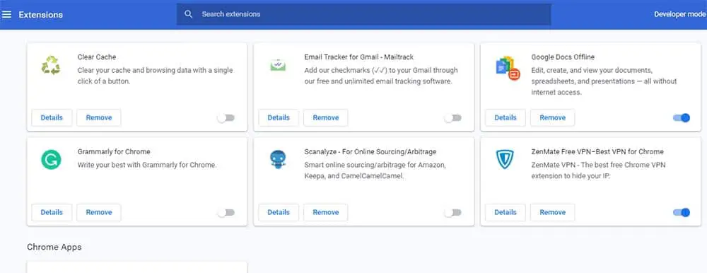 - Select “Extensions”. This will open up the Extensions page in your Chrome browser;