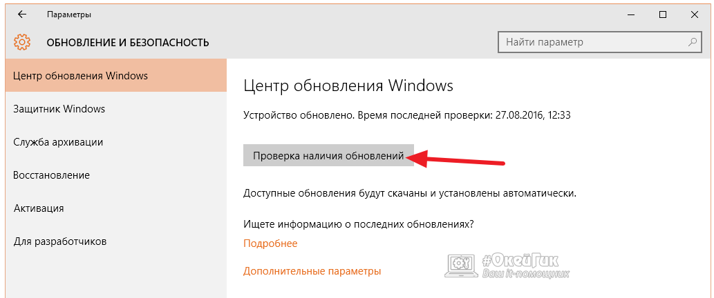 Чтобы проверить наличие обновлений для Windows 7 и более ранних версий, нужно зайти в «Панель управления» и выбрать «Центр обновления Windows». На операционных системах Windows 8 и Windows 10 это делается по нажатию кнопки «Пуск», далее нужно выбрать «Параметры» и перейти в раздел «Обновление и безопасность».