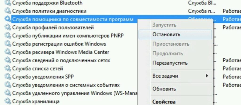 Иногда, если вышеописанные методы не помогают, можно попытаться отключить службу помощника по совместимости приложений или службу контроля учетных записей. В большинстве случаев это не требуется.