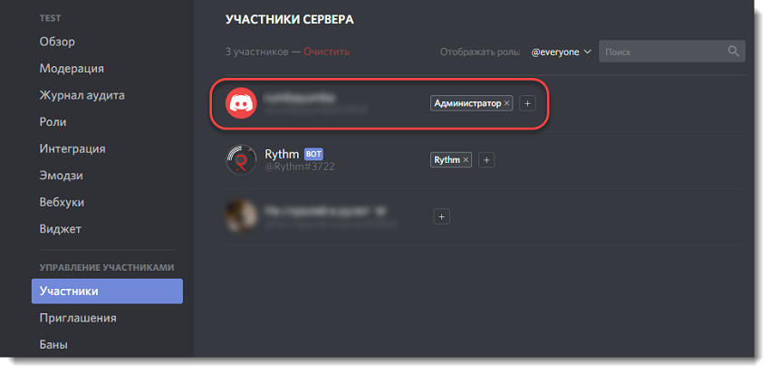 Актуален только в том случае, если вы уже создали специальный «Ярлык» с нужными правами и хотите назначить ее новому участнику. Для этого не обязательно заходить в меню «Настройки». В группе Discord выдать админку можно следующим образом: