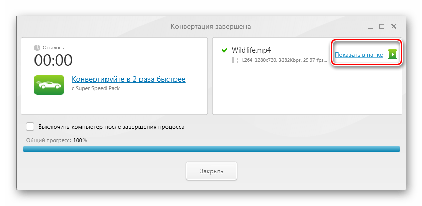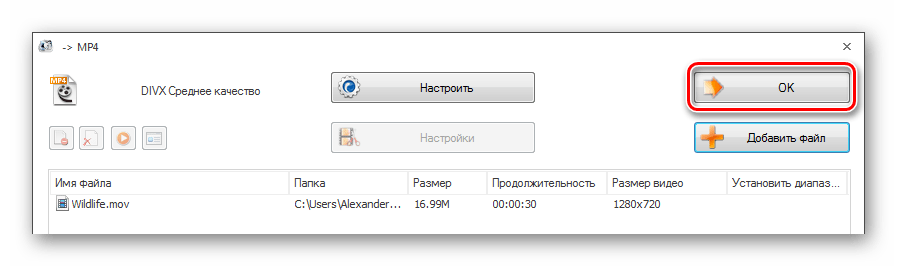 Нажмите «Конвертировать», запустив тем самым преобразование в указанный тип ролика.