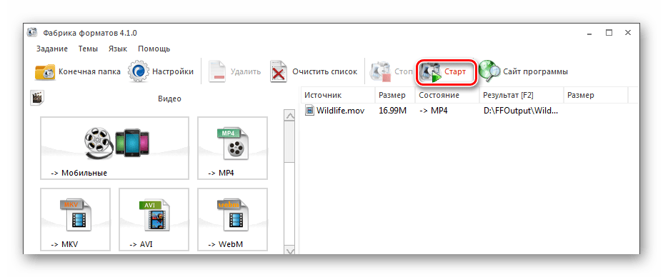 Проверьте все выбранные параметры и нажмите кнопку «Старт» или «Конвертировать», чтобы начать процесс конвертации.