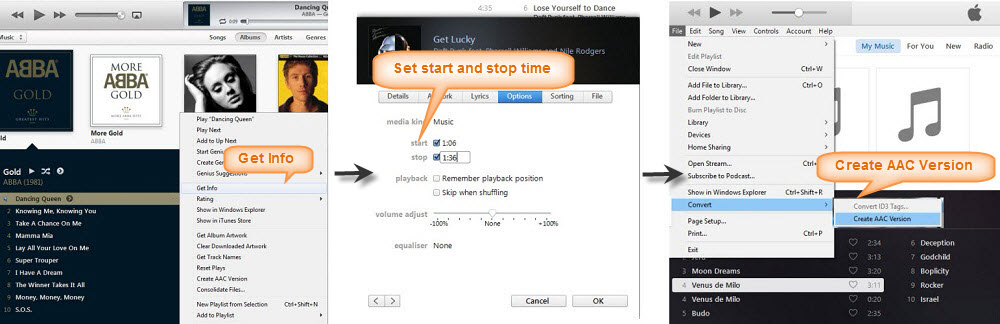 - Choose Create AAC version. For older iTunes versions, right click on the track and then select Create AAC version. If you’re using iTunes 12.7/8, click on the track, go to File menu, choose Convert and then select Create AAC version.