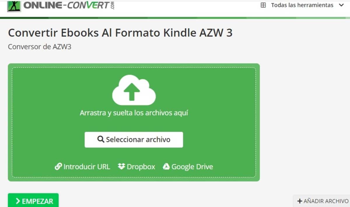 С онлайн-инструментом этого будет более чем достаточно, чтобы его прочитали. в устройстве для чтения электронных книг Amazon. Представьте себе, что у вас много ePUB и вы не можете прочитать их на своем Kindle, есть быстрое решение этой проблемы, и это не что иное, как преобразование каждого из них в AZW, AZW3, PRC или MOBI.