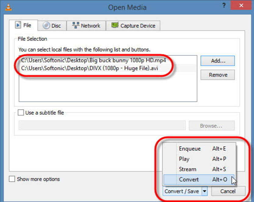 Step 1: Launch VLC player and click Media > Convert/Save…, then you’d get an Open Media pop-up, click Add… and choose Convert from the drop-down icon in the bottom right.