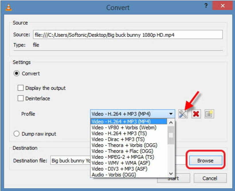 Step 2: Click Browse to specify the destination folder and choose Video-+MP3(MP4) beside Profile option as output format.