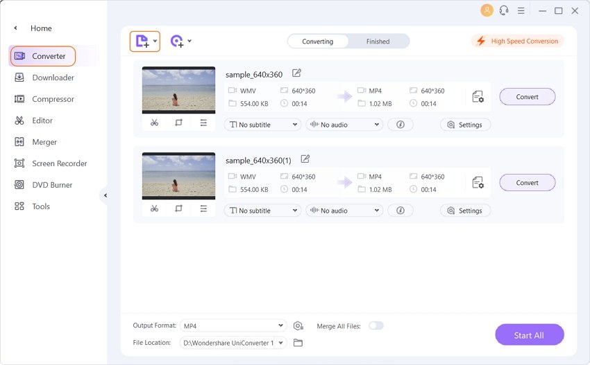 Part 1. Best WMV to MP4 Converter — UniConverter