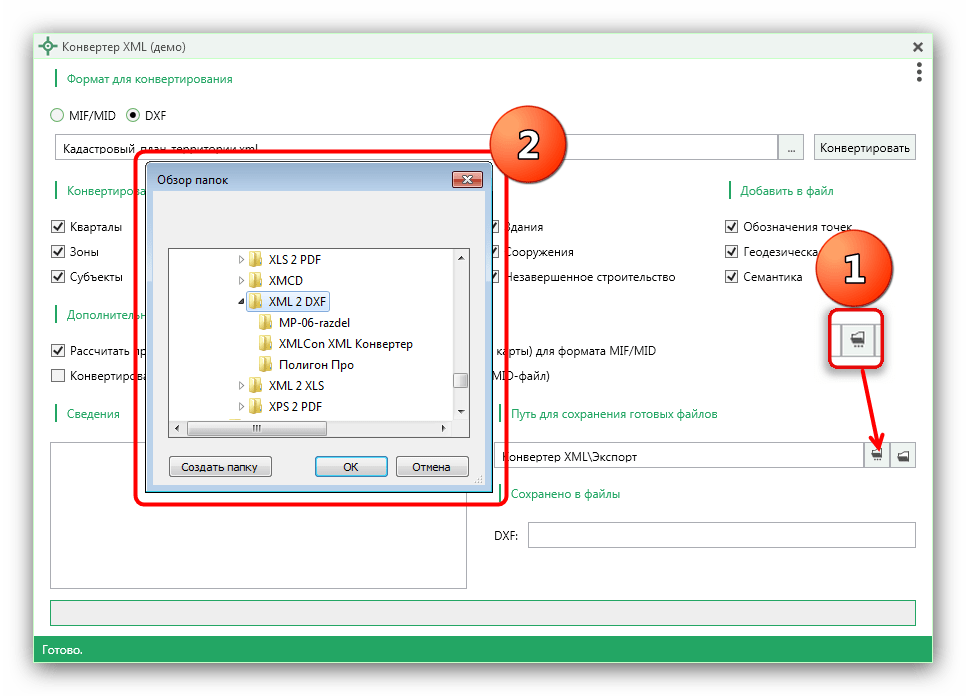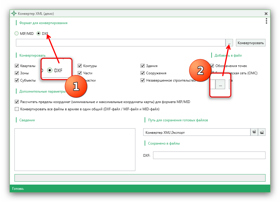 В качестве примера обратимся к платформе , она позволяет обрабатывать кадастровые файлы, присланные в XML. Лицензионная версия программы имеет встроенный преобразователь расширений, так что вам не придется искать онлайн-сервис конвертер ХМЛ в ДХФ.