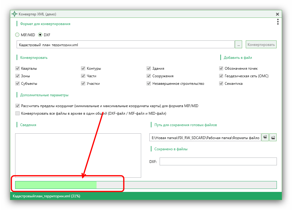 Ход преобразования отображается в виде прогресс-бара внизу рабочего окна программы.