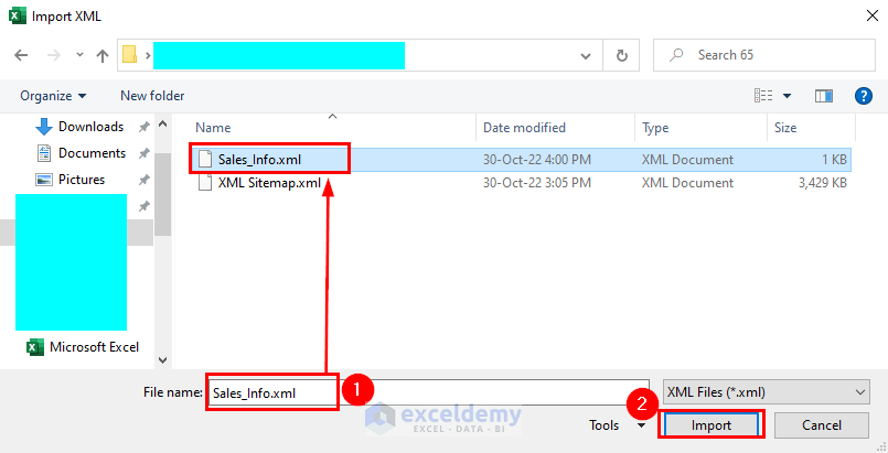 Найдите XML-файл, содержащий данные таблицы, перейдя к его местоположению. Чтобы воссоздать таблицу XML в электронной таблице Excel, выделите файл данных и выберите «Импорт», чтобы перенести данные непосредственно в электронную таблицу под информацией таблицы.